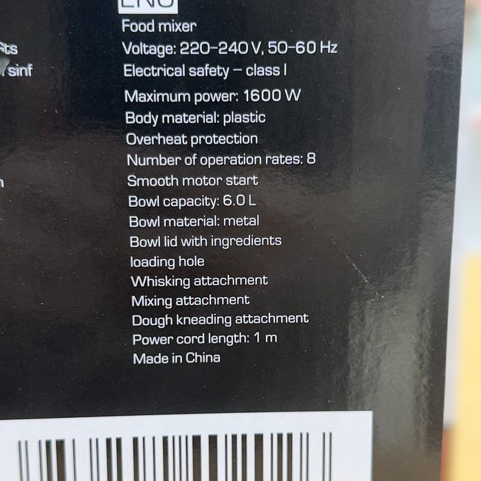 Bowl capacity: 6.0 L