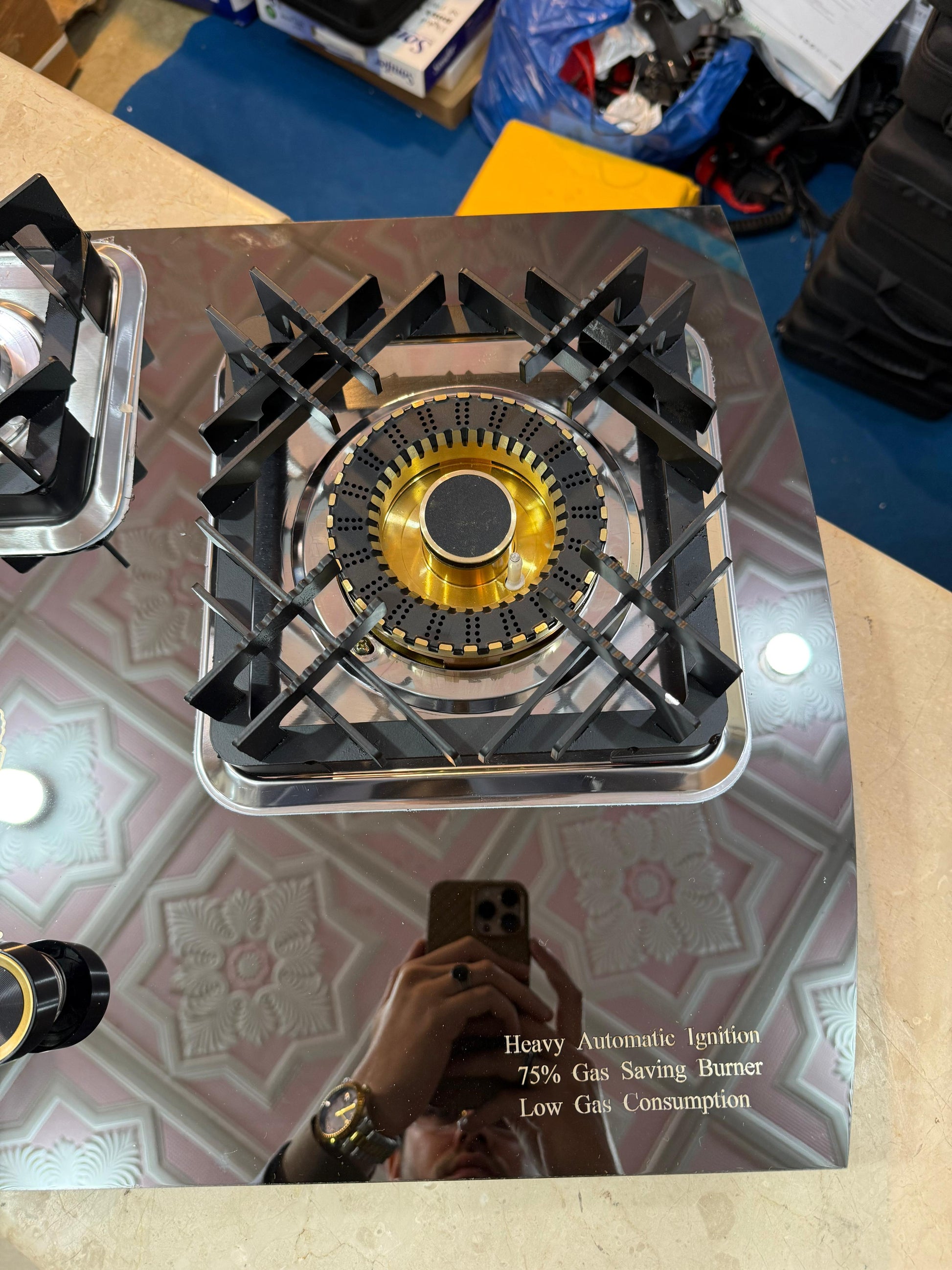 * **Heavy-Duty Pan Supports:** Designed with sturdy pan stands that provide excellent stability for heavy pots, tawa, and pressure cookers.