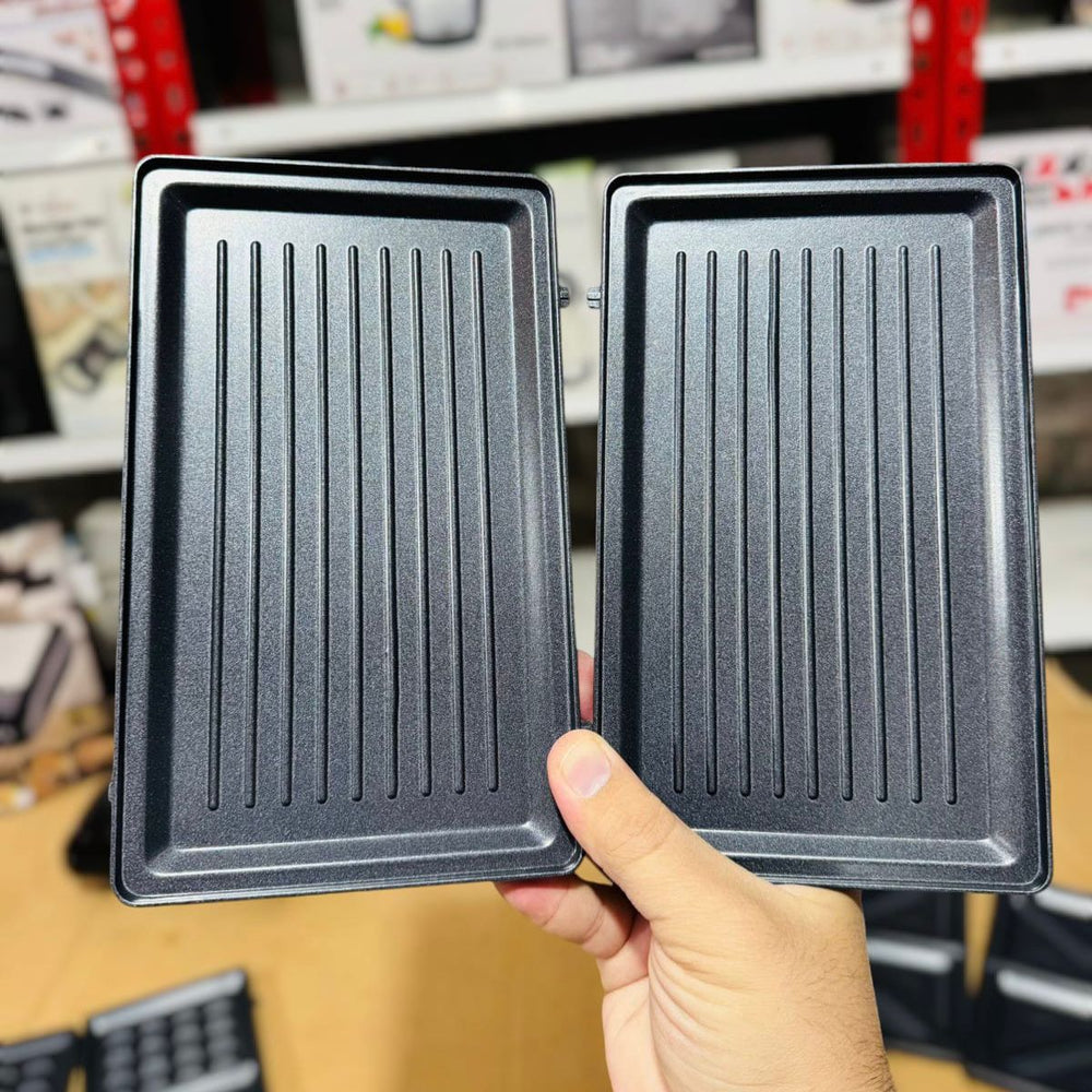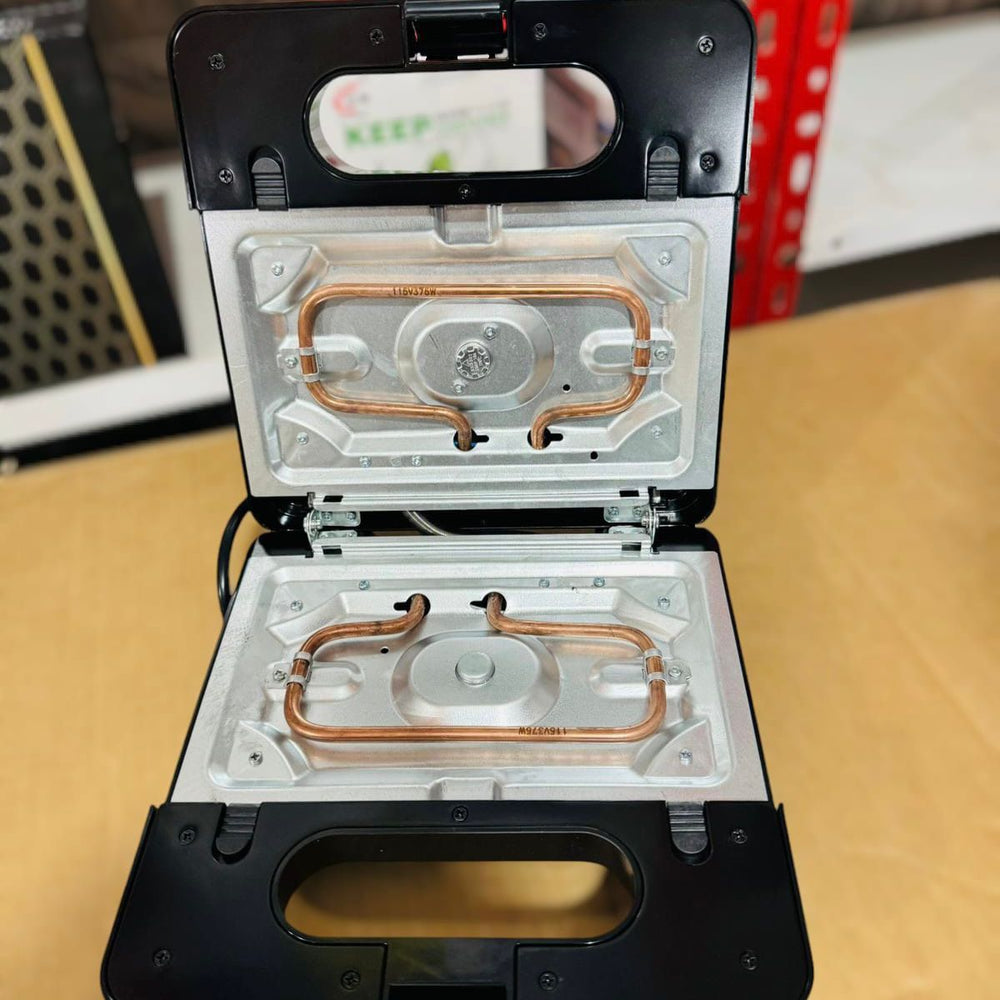 - includes grill, sandwich & waffle plates